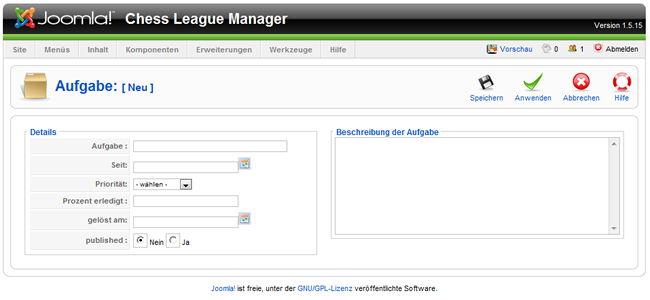 Wir treffen hier zum ersten mal auf Bedienelemente wie sie typisch für den CLM und Joomla sind. Die Knöpfe "Freigeben", "Sperren", "Kopieren", "Löschen", "Bearbeiten" und "Neu".