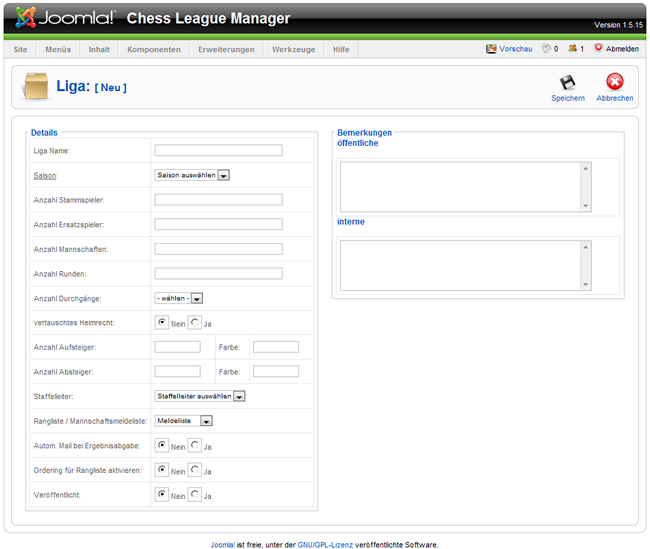 - Eine "öffentliche Bemerkung" wird in der Ranglistenübersicht der Liga im Frontend, für jeden sichtbar, platziert !