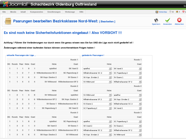 Achtung ! Änderungen sollten VOR dem Start der Liga durchgeführt werden. Eine Änderung im laufenden Betrieb kann unvorhergesehene Folgen haben !