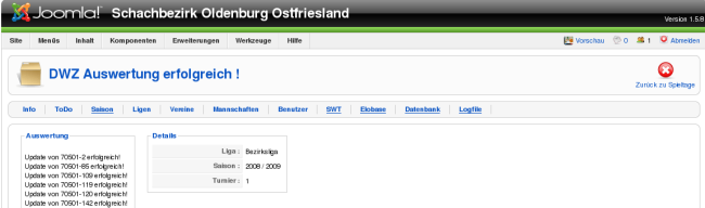 Wenn "DWZ Auswerten" im Rundemanager asugelöst wurde, kann man hier die Spieler sehen, für welche ein Update durchgeführt wurde.