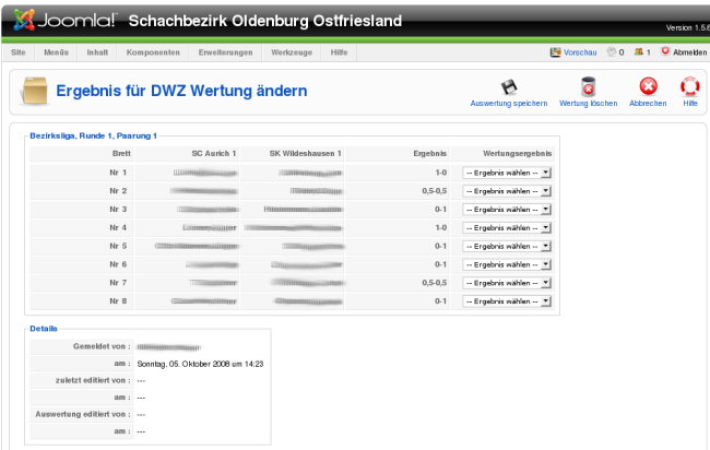 Im Frontend erscheint ausschließlich das, für die Liga relevante, Ergebnis nach TO, während für die DWZ Auswertung das geänderte Ergebnis Verwendung findet.