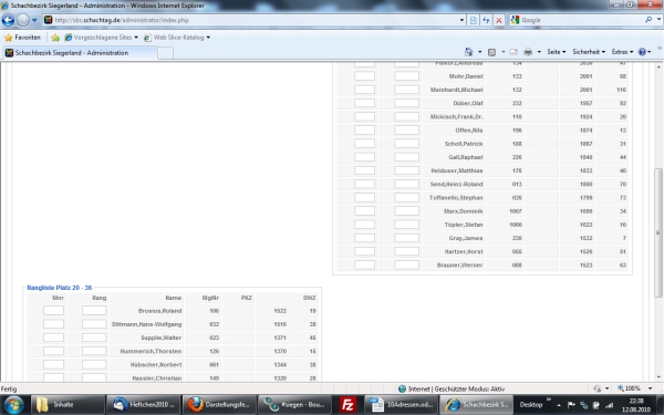 Beim IE 8 werden beim Ranglisten erstellen / bearbeiten die beiden Kästen mit den Spielern versetzt (1. rechts oben, 2. links unten) angezeigt.