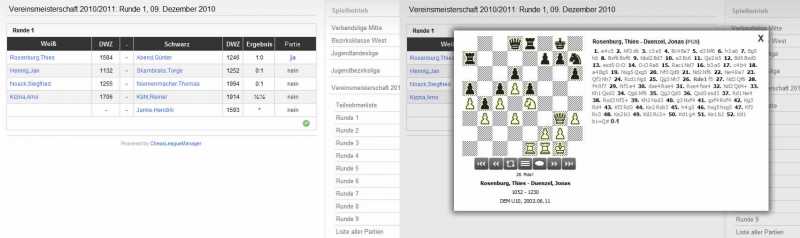 Das absolute "I"-Tüpfelchen wäre, wenn es bei Turnieren (oder auch Ligaspielen?) noch die Möglichkeit gegeben wäre, die Partien nachzuspielen. Der "PGN Viewer" steht schon bereit, müsste aber noch mit dem CLM verbunden werden, also das man ein zusätzliches Feld neben der Ergebniseingabe einfügt, wo man die PGN reinkopiert.