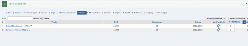 danach sollte auch ein klick auf die Vereinsliste im Frontend funktionieren