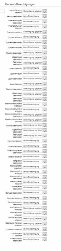 Das Problem war, dass bei Vergabe der Berechtigungen laut Anhang trotz Auswahl eines Turniers ein "Update" dazu führt, das ein neues Turnier angelegt wurde.