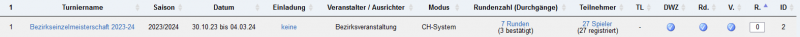 ich habe das kleine Problem, dass in einem Einzelspielerturnier nach CH-System im Backend nach dem Import unter Runden nur die bereits ausgelosten Runden angezeigt werden.