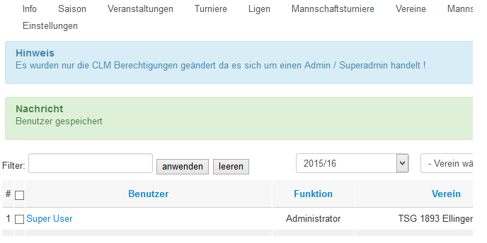 Er kann aber in Joomla und CLM um den jeweiligen Zweck zu erreichen unterschiedliche Berechtigungen haben. Die dann im jeweiligen Bereich angepasst werden müssen