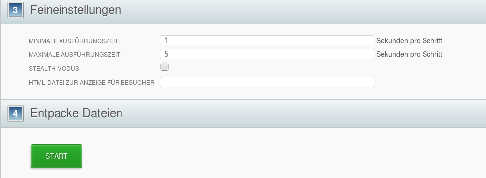 Ein Klick auf START setzt den Prozess des entpackens in Gang.
