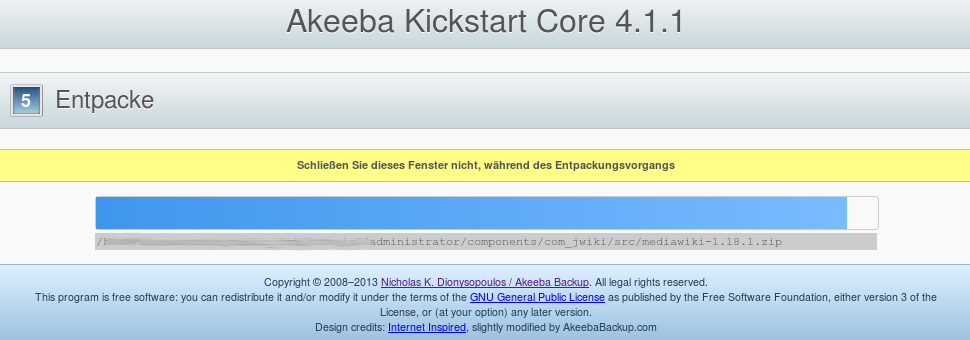 - Akeeba Kickstart zum Entpacken des JPA Archives ( https://www.akeebabackup.com/products/akeeba-kickstart.html )