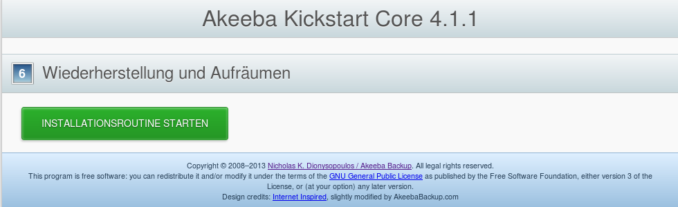 - Das Backup lagert unter <pfad zur seite>/administrator/components/com_akeeba/backup/site-NAME.de-JJJJMMTT-HHMMSS.jpa