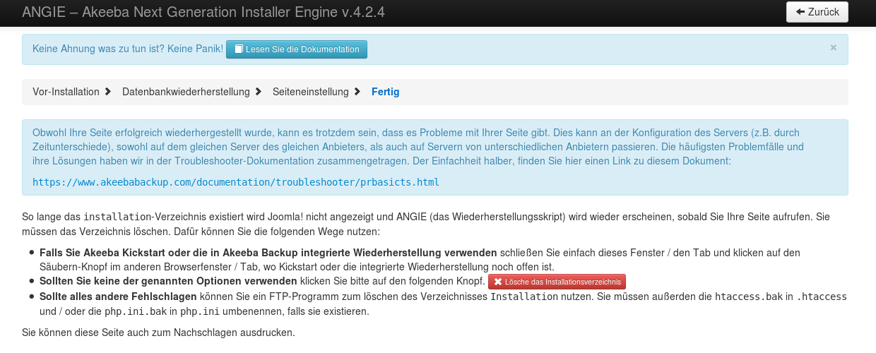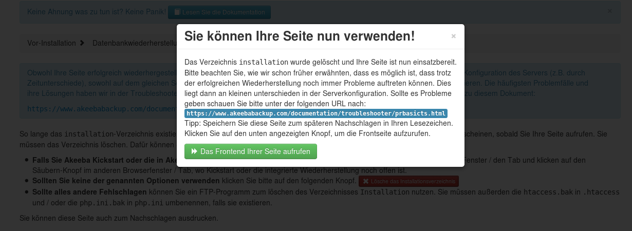 Dieses Fenster sagt vermutlich genug aus. Rufen Sie das Frontend der Seite auf um zu überprüfen ob alles funktioniert.