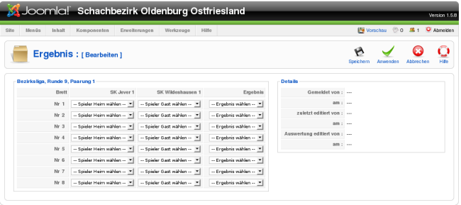 Jeder Turnierleiter hat ausschließlich Zugriff auf seine Turniere aber einschl. Ligadetails und Ergebnisbearbeitung.