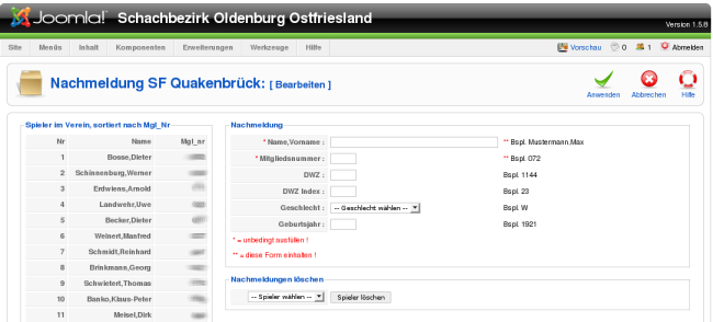 Um eine Nachmeldung zu löschen wählen Sie den entsprechenden Spieler per Dropdownmenü aus und klicken auf die "Spieler löschen" Schaltfläche.